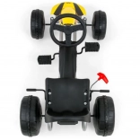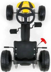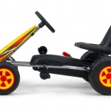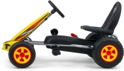 A pedálos előre- és hátramenetnek, a kéziféknek és a puhahab kerekeknek színes felnikkel köszönhetően az utazás egyenletes és kényelmes még egyenetlen felületen is. A kétlépcsős ülés-távolság állítás megfelelő pozíciót és komfortot biztosít különböző testmagasságú gyerekeknek.