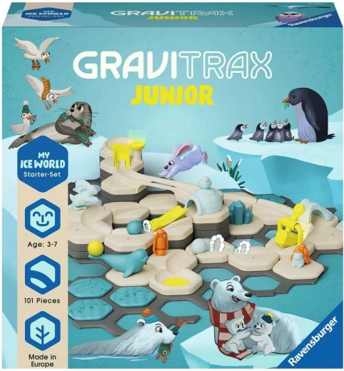 Fedezd fel a kreatív szórakozást a GraviTrax Junior Jégvilág induló készlettel 3 éves kortól. A 101 darabos készletnek köszönhetően, beleértve az akcióelemeket, a Hinta és a Kalapácsfa bioplasztikból, valamint a díszítő elemek tematikus jégvilágot teremtenek, amely támogatja a kreativitást, a finommotorikát és a fantáziát.