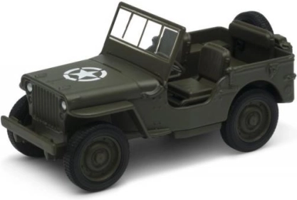 Nézze meg az olajzöld színű, fehér csillaggal megjelölt ismeretjeggyel kiegészített, valósághű lovagló járműmodellt.