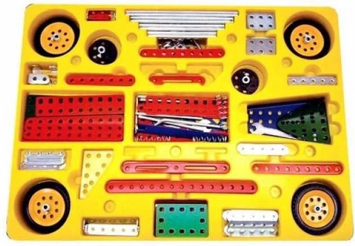 A MERKUR készletek zászlóshajója teljes felszereltséget nyújt ambiciózus projektekhez. Ez az ötrétegű szett tartalmazza mindazokat az elemeket, amelyeket a kisebb készletekből ismersz, kiegészítve motorral és széles választékú hajtáselemekkel. A masszív fém szerkezetnek és a precíz furatoknak köszönhetően az építés stabil, pontos és rendkívül variálható.
