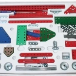 A MERKUR 100 modell építőkészlet népszerű változatossága és építési lehetőségei miatt. Tartalmazza a legtöbb olyan alkatrészt, mint a Merkur M5 és egyéb elemek, például nagy traktor kerekek, fogaskerekek, hosszú szögvasak és mások. A készlet elegendő darabszámot biztosít a fiatal tervezők kreativitásához.