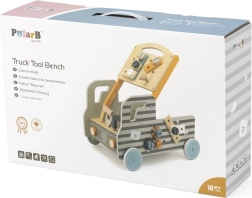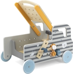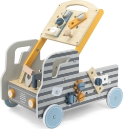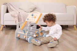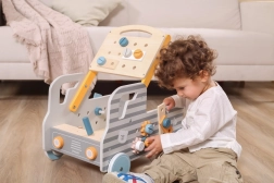 Ez az autó formájú gurulós munkapad egyesíti a munkapadot egy interaktív építőkészlettel. Minden eleme fából készült és a kis kezekhez igazodik, hogy a gyerekek biztonságosan kipróbálhassák a szerszámok használatát. A készlet ösztönzi a kíváncsiságot, a türelmet, és támogatja a kéz–szem koordinációt.