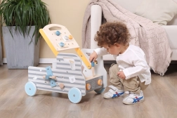 Szerszámos munkapad, amelyet a gyerekek könnyedén magukkal tolhatnak. A tárolóhellyel ellátott kocsi rendre nevel és támogatja az önálló játékot.