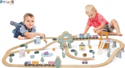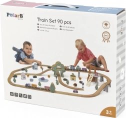 Fedezze fel a fantázia világát a POLARB fa vonatpályával. A készlet 90 gondosan kidolgozott elemet tartalmaz: egyenes és íves síneket, emelkedőket és hidat, mozdonyt vagonokkal, közlekedési táblákat, házikókat, járműveket, állatkákat, fákat és sziklákat. Az egyszerű csatlakoztatásnak köszönhetően számtalan pályát és jelenetet lehet felépíteni, amelyeket a gyerekek folyton variálnak és bővítenek.