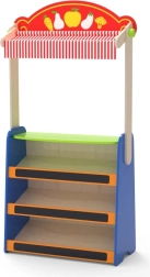 A kis pult áttekinthető polcokat kínál az élelmiszerek és kiegészítők tárolására (külön kaphatók). Masszív kivitel, mutatós színes részletek és napellenző hívnak kreatív játékra és közös tevékenységekre. A játék fejleszti a képzeletet, a kreativitást, a logikus gondolkodást és a kommunikációt.