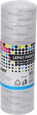 Átlátszó ragasztószalag 18 mm szélességgel és 20 m hosszú tekercsben, ideális általános irodai és otthoni használatra. A csomag 8 darabot tartalmaz ebből a praktikus szalagból.