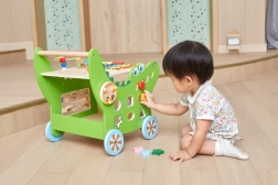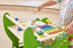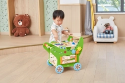 A xilofon, számláló, labirintus, fogaskerekek, formaillesztő doboz, motoros hurok és más elemek lekötik a gyerekeket, miközben játékosan fejlesztik készségeiket.