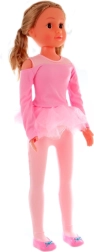 Ez az elegáns, 80 cm magas balerina baba elbűvöl minden gyermeket, aki szereti a táncot és a fantáziadús játékot. A mozgatható végtagoknak köszönhetően a babát lehet vezetve sétáltatni, finoman „táncra perdíteni”, és gyakorolni vele az alap balettpozíciókat.