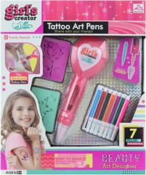 Ezzel a szórakoztató készlettel a gyerekek könnyedén készíthetnek stílusos, ideiglenes tetoválásokat. Az elektromos tetováló tollnak köszönhetően az alkalmazás egyszerű és gyors, a sablonok segítenek a pontos formákban, a 7 színes toll pedig bővíti a kreatív lehetőségeket.