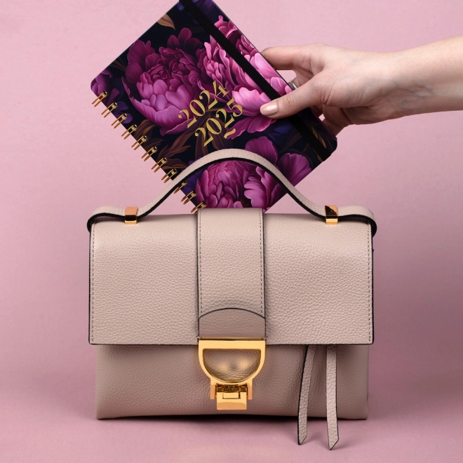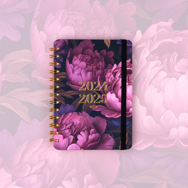 Praktikus, 18 hónapos NOTIQUE Petito határidőnapló lila virág mintával, a 2024 és 2025 évekre szóló áttekintéssel, átlátható heti vonalas kalendáriummal angolul és németül, ünnepnapokkal és bőséges jegyzethelyekkel. Az ideális 13 × 18 cm-es méret és a strapabíró spirálkötés stílusos társsá teszi iskolába, munkába és utazáshoz.