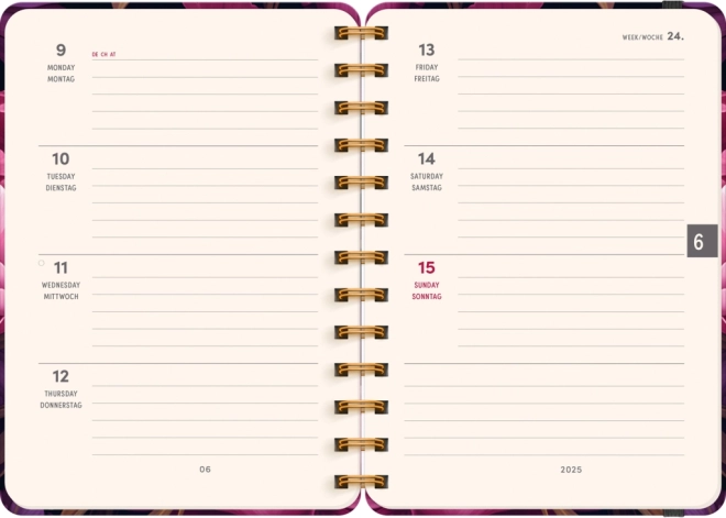 Kompakt, 13 × 18 cm-es méretének köszönhetően a napló könnyen elfér táskában vagy hátizsákban, míg a spirálkötés kényelmes, teljes szétnyitást és komfortos írást biztosít. A 2024 és 2025 évekre szóló áttekintők és a jelölt ünnepnapok megkönnyítik a tájékozódást és a tervezést.