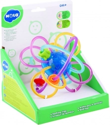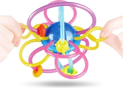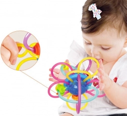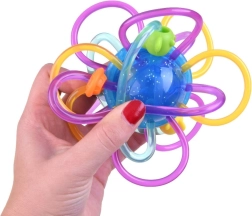 Ez a kreatív „gömb” összefonódó hurkokkal és gyöngyökkel természetes módon ébreszti fel a gyermek érzékeit. A rugalmas és hajlékony hurkok a legkisebb kezekben is kényelmesen tarthatók, míg a sima, puha felület gyengéden masszírozza az ínyt. A mozgatható gyöngyök és a finom csörgés támogatják a hallási észlelést és a koncentrációt.