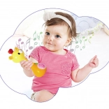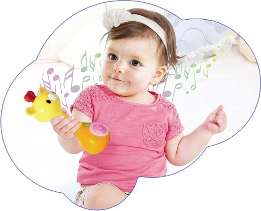 Az interaktív csörgő többet nyújt a hagyományos susogásnál – vidám dallamokat, rövid hangeffekteket (madarak, gyermekkacaj, rugó) és hangjegyes játékot kínál rázásra. Az állatka színesen világító pocakja felkelti a figyelmet és ösztönzi az ismételt játékra.