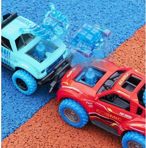 A Predator 4x4 kisautó tökéletes azoknak a gyerekeknek, akik imádják a gyors vezetést, a kaszkadőrmutatványokat és a látványos ütközéseket. Csak húzd fel, engedd el, és figyeld az akciót – a látványos ütközést villogó kék–piros fények és dinamikus hangok kísérik. A kompakt méret megkönnyíti a fogást és a hordozást.
