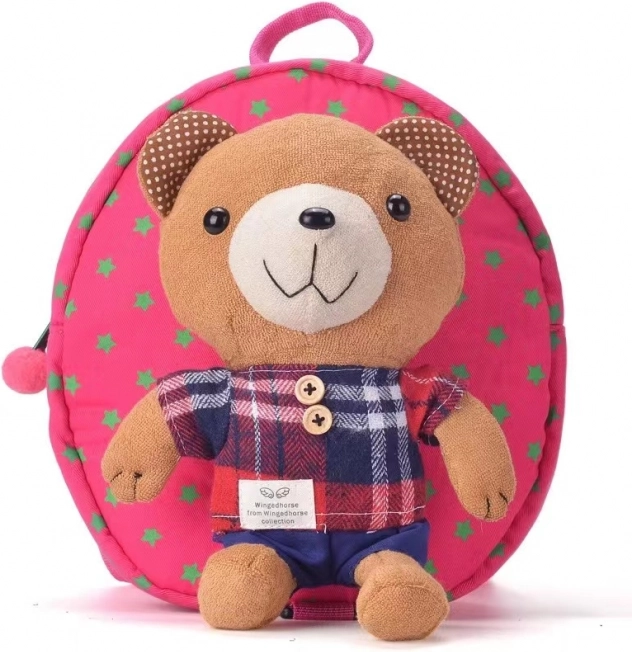 Gyermek hátizsák biztonsági pórázzal, maci – rózsaszín
