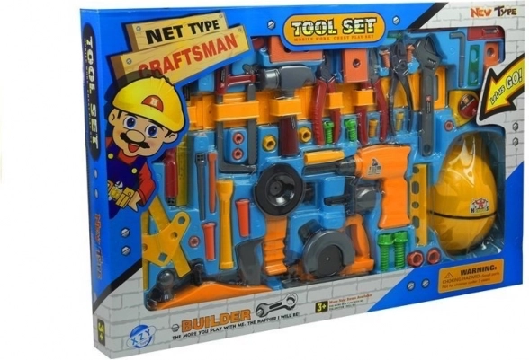 A szett meghajtott elemeket tartalmaz (fúrógép, csiszoló és körfűrész) 2× AA 1,5 V elemmel működve, továbbá kéziszerszámokat és kötőelemeket építéshez és csavarozáshoz. A praktikus szerszámos öv gondoskodik róla, hogy a szerszámok mindig kéznél legyenek, és támogatja az önállóságot és a munkaszervezést.