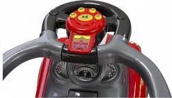 Az ülés körüli védőkorlátok és a lehajtható lábtartók stabilitást és kényelmet biztosítanak a hosszabb utazásokhoz. Az interaktív kormány zenei és hangos gombjaival fejleszti az észlelést és az analitikus gondolkodást, míg a fokozatosan eltávolítható elemek (korlát, vezetőkar) lehetővé teszik az eszköz életkorhoz és készségekhez igazítását.