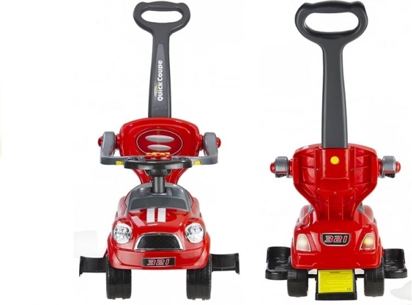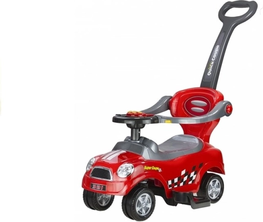 A piros Coupe lábbal hajtós autó mozgásra ösztönzi a gyerekeket, a szülőknek pedig nyugalmat ad az átgondolt biztonsági elemeknek köszönhetően. A gyermek a kormánnyal önállóan irányíthat, vagy átveheted te az irányítást a praktikus vezetőkarral. A könnyű műanyag szerkezet megkönnyíti a kezelést, és gondoskodik róla, hogy a kis sofőr ne fáradjon el túl gyorsan.