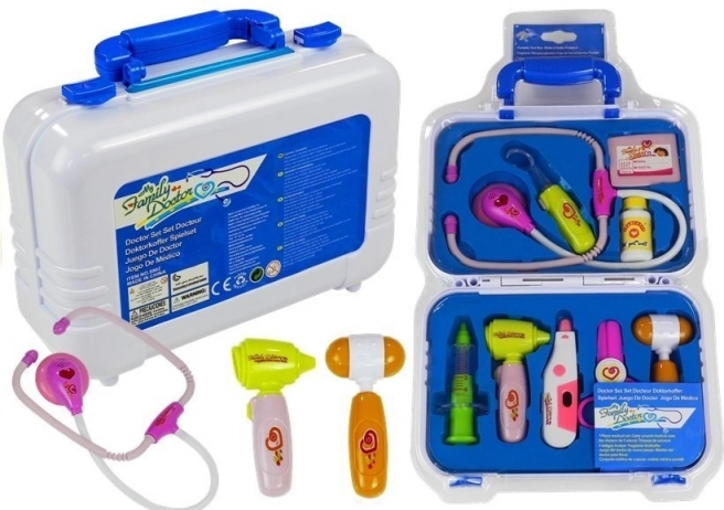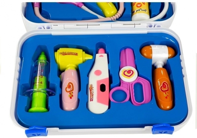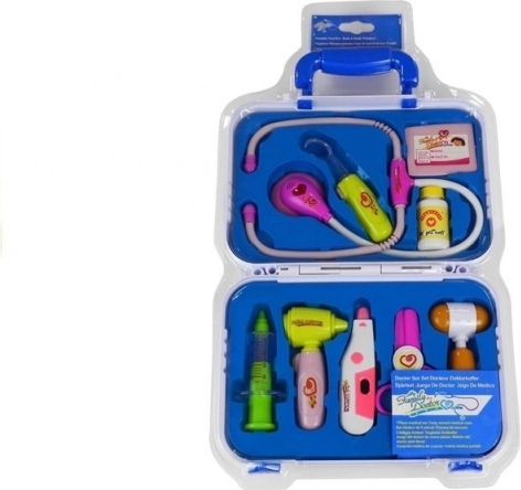 Ez a komplett gyermekorvosi készlet zárható táskában minden kíváncsi kicsinek örömet okoz. Az eszközök valósághű megjelenésének és barátságos színeinek köszönhetően a játék lebilincselő és biztonságos. A gyerekek megvizsgálhatják a családtagokat, babákat és plüssbarátokat, miközben empátiát és finommotorikát fejlesztenek.