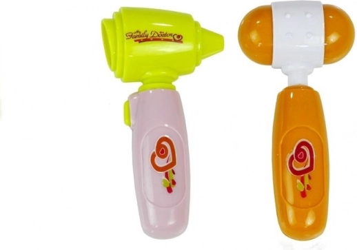 - Fecskendő, otoszkóp/vizsgáló eszköz lámpával, állítható hőmérő, olló, reflexkalapács, megvilágított tükör, szívdobbanás hangú sztetoszkóp, gyógyszertartó doboz, családi orvos névkitűző, műanyag táska