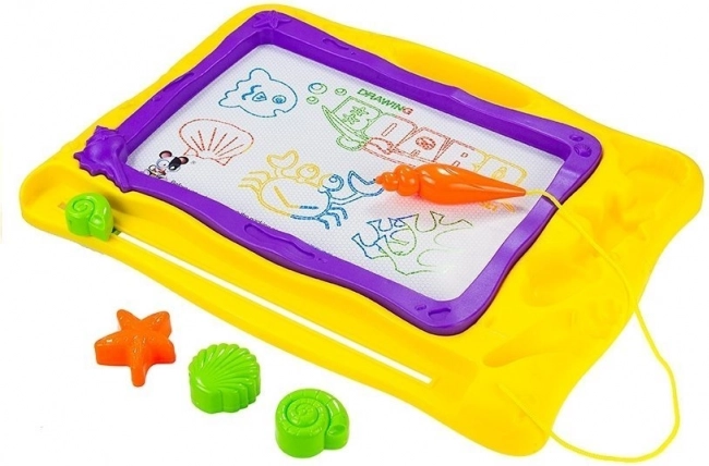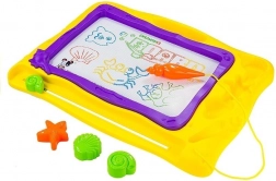 Fedezze fel a szórakoztató és praktikus játékot a kis művészek számára – mágneses rajztábla tengeri színekben, színes háttérrel, amely 8 szekcióra van osztva. A varázslatos törlésnek köszönhetően a csúszkával a gyerekek újra és újra rajzolhatnak rendetlenség nélkül. A csomag tartalmaz 3 alakos pecsétet (szívecske, csillag, kör) és egy ergonomikus, kagyló alakú stylust a kényelmes fogásért, amely fejleszti a kreativitást és a finommotorikát is.