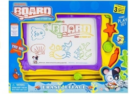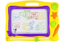 A mágneses tábla remek választás papír nélküli, maszatolásmentes rajzoláshoz. A kijelző alatt fémreszelék található, amely mágneses stylus érintésére képekké rendeződik. Törléshez elég enyhén elcsúsztatni az alsó törlőcsúszkát, és a felület máris készen áll az új alkotásra.