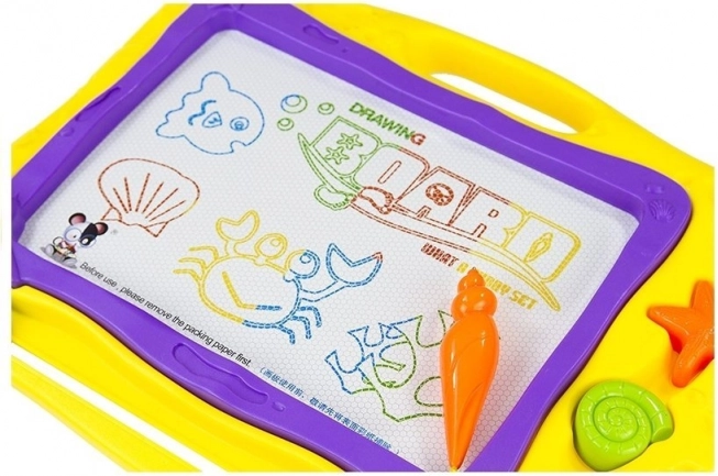 A 8 részre osztott színes háttér életet visz minden rajzba, és támogatja a gyerekek fantáziáját. A tengeri dizájn kagylókkal és tengeri csillagokkal elbűvöli az óceán rajongóit. A minőségi kivitelezés hosszú élettartamot és biztonságos használatot garantál – csak a mellékelt mágneses tollal rajzoljon.