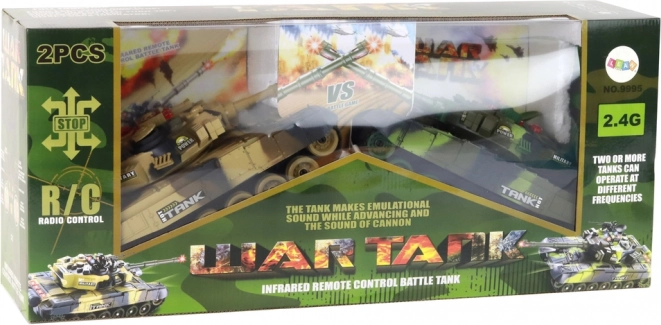 Két valósághű RC harckocsi infravörös harcrendszerrel izgalmas, akciódús szórakozást nyújt két játékos számára. Minden tank hossza 44 cm, tornya 300°-ban forgatható, gumilánctalpakkal a kiváló tapadásért és 2.4 GHz-es, zavarásmentes vezérléssel. Életéletrendszer négy jelzővel, a motor és a lövés hanghatásai, akár 7–8 km/h sebesség és gazdag tartozékkészlet, beleértve az akkumulátorokat és töltőket, garantálják a valósághű csatát és a hosszú üzemidőt.