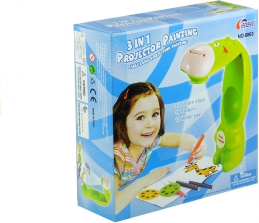 Ez a zsiráf formájú gyerek projektor képeket vetít papírra vagy falra, így a kis alkotók lépésről lépésre könnyedén tanulhatnak rajzolni. A vezérlés egyszerű és intuitív – csak helyezze be a lemezt, válassza ki a motívumot, és nyomja meg a projektor gombját. A állítható vetítési szögnek köszönhetően asztalra és falra vetítéshez is ideális.