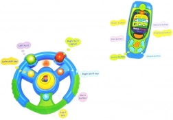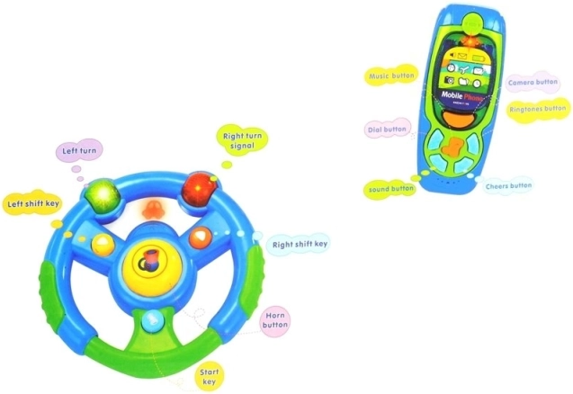 A mi interaktív készletünk gyerekek számára magába foglal egy kormánykereket, telefont és kulcsokat. Minden rész úgy készült, hogy könnyedén illeszkedjenek a kisgyermekek kezébe, és szórakoztató, valamint oktató jellegű játékot nyújtsanak.