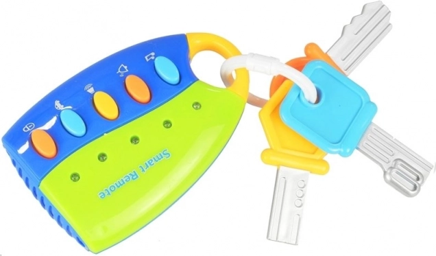 Színes távirányító kulcsokkal, amely riasztó, motorhangok és más effektusokat kínál a gyermekek képzeletének fejlesztésére.
