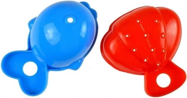 A készlet tartalmaz továbbá hal- és kagylóformákat, amelyeket a gyerekek használhatnak homokkal és vízzel való játék során.