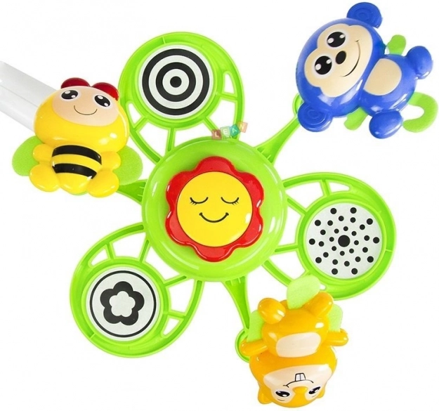 Vidám állatkák élénk színekben vonzzák a gyermek figyelmét, segítik a mozgás követését és a szem–kéz koordináció fejlődését.