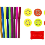 A csomag 6 cserélhető lemezt tartalmaz összesen 36 motívummal, melyeket a gyerekek könnyedén kivetíthetnek és átrajzolhatnak. Ideális az első rajzolási lépésekhez frusztráció nélkül.