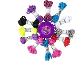 A készlet 12 színes zsinórt tartalmaz, a zsinór átmérője körülbelül 0,5 cm. Mindegyiket felhasználhatja karkötő vagy fonat készítéséhez. Emellett a csomag tartalmaz egy eszközt, amely megkönnyíti a fonást és a karkötők elkészítését.