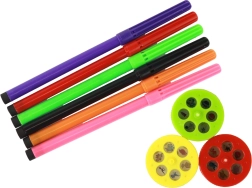 A készlet mindent tartalmaz, amire szüksége van a szórakozáshoz: 6 színes toll és 2 minta készlet, amelyek a falra vagy papírra vetíthetők. Összesen 12 kép érhető el.
