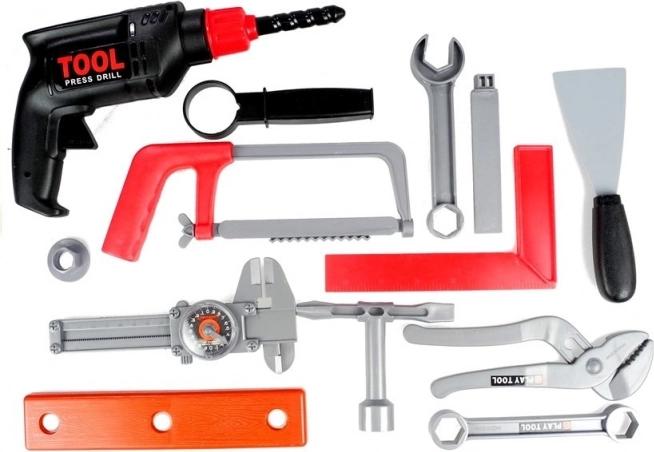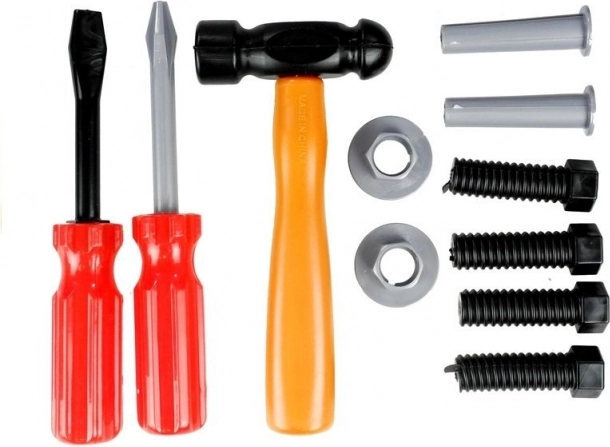 Ez a komplett készlet a kis ezermesterek számára mindent tartalmaz, ami a javításhoz és a mesteremberes játékhoz szükséges. A könnyű és tartós bőrönd rekesszel áttekinthetően együtt tartja az összes elemet, miközben az élethű műanyag szerszámok biztonságosan vezetik be a gyerekeket a szerszámok világába.