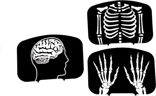 A fej-, mellkas- és kézröntgen kártyák felkeltik a kíváncsiságot, és játékos módon segítenek megérteni az anatómia alapjait.