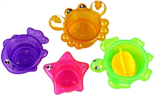 A halacska, a rák, a tengeri csillag és a teknős egymásba helyezhetők. Fejlesztik a finommotorikát, a formák és színek felismerését.