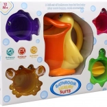 Fürdőjáték, amely örömet szerez gyereknek és szülőnek egyaránt. A praktikus fogantyúval ellátott pelikán vizet mer és önt, míg a négy színes állatos pohárka merítésre, átöntögetésre és egymásba rakásra is használható. A biztonságos műanyagnak, a sima éleknek és a játékos dizájnnak köszönhetően a szett tökéletes a mindennapi vizes mókához.