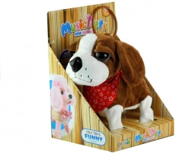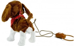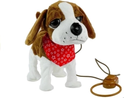Az interaktív plüsskutya puha, nem mérgező és környezetbarát anyagból készült, amely kellemes tapintású. A játéknak nagy, sötét szemei vannak, vidáman mozgatja a farkát, és piros kendője van a nagyobb bájért. A hosszú póráz vezérlővel lehetővé teszi, hogy a gyermek könnyen irányítsa a kutya mozgásait, ezzel nagyon valósághű és izgalmas játékot biztosít.