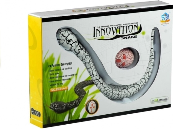 Szórakoztató, interaktív kígyó valósághű S-alakú mozgással, kiölthető nyelvvel és fényhatásokkal. A vezérlést egy infravörös, tojás alakú távirányító biztosítja, kb. 10 m hatótávval. A szegmentált testnek és az alján lévő kerekeknek köszönhetően a kígyó simán mozog különböző felületeken. Remek választás kreatív játékhoz, apró tréfákhoz, valamint a gyerekek képzelőerejének és kreativitásának fejlesztéséhez.