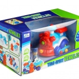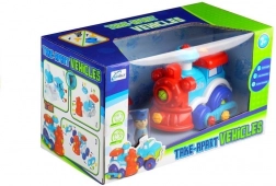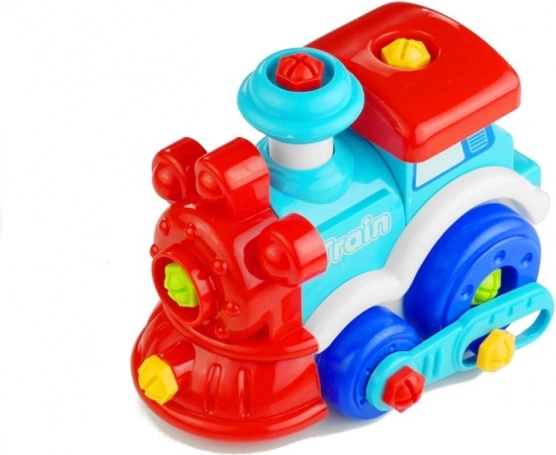 Színes vonat mozgatható kerekekkel lehetővé teszi a gyerekek számára a játékos utazást különféle felületeken. A vonaton kívül a készlet figurákat és kulcsot, valamint csavarhúzót tartalmaz, amelyek remekül illeszkednek a gyerekek kezébe, és könnyen használhatók. A játék így bővíti a gyerekek fantáziája szerinti játék lehetőségeit.