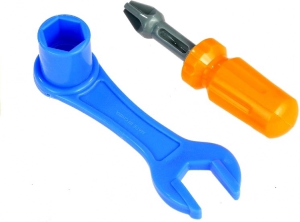 A kulcs és csavarhúzó támogatja a finom motorikát és természetesen a játék részét képezi.