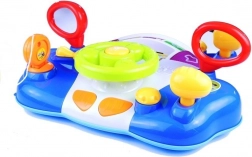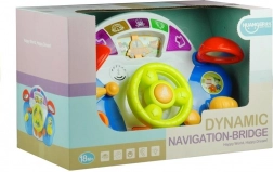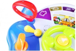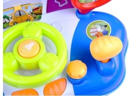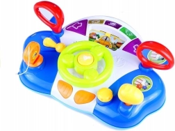 Ez az interaktív játék számos színes elemet és hangot kínál, amelyek hozzájárulnak a képességek fejlesztéséhez. Ideális formák és színek felismerésére, két hangerő-szintet biztosít a különböző környezetekhez és napszakokhoz igazodva. Az ergonomikus kormánykerék könnyen tartható kis kezekben, és tartalmaz 7 féle hangot, világító jelzőket és forgatható tükröket. A gyerekek manipulálhatják a kulcsot a kapcsolóban és gombnyomással aktiválhatják a motorhangot. A kormánykerék elfordítása az autót is mozgatja a pályán.