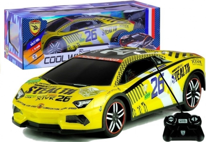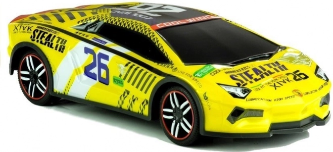 Ez a sport RC autó a versenyautók dinamikus megjelenését és a könnyű kezelhetőséget kínálja 3 éves kortól. A tartós PVC anyagnak és a gumi kerekeknek köszönhetően különböző felületekkel is megbirkózik, míg a 27 MHz frekvencia segít minimálisra csökkenteni a zavarásokat vezetés közben. A valósághű matricák és a sárga karosszéria kiemelik a versenykaraktert.