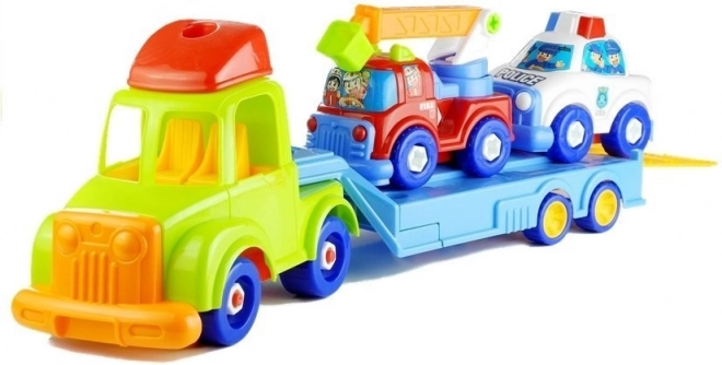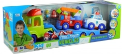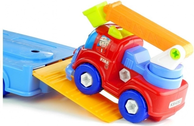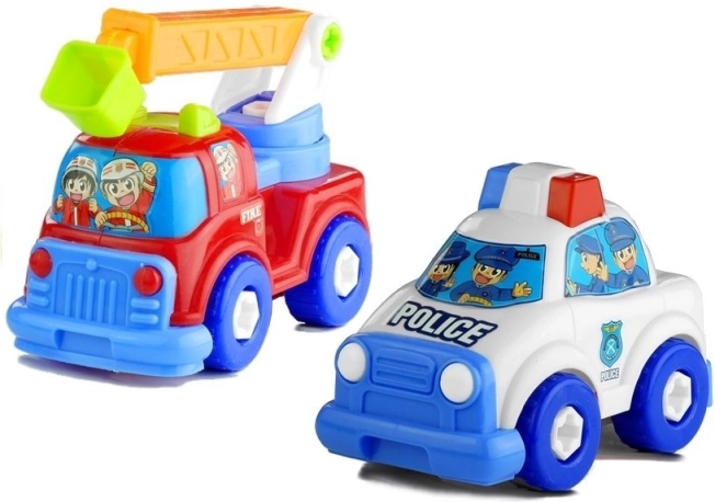 Ez a színpompás járműkészlet, amely lehetővé teszi a szétszerelést és összeszerelést, stimulálja a gyerekek kreativitását és motorikus képességeit. Tartalmaz egy szállítót, rendőrautót és tűzoltóautót, amelyeket egyszerűen szét lehet csavarozni műanyag szerszámokkal. Ez az interaktív játék kombinálja a közös játék lehetőségét a szülőkkel vagy testvérekkel, valamint az önálló játékot.