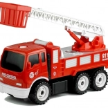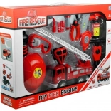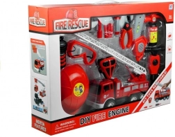 - tűzoltóautó kihúzható létrával, sisak, szemüveg, maszk, tűzoltó készülék, adó, fűrész, fogó, csavarhúzó és további szerszámok fejekkel