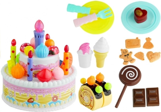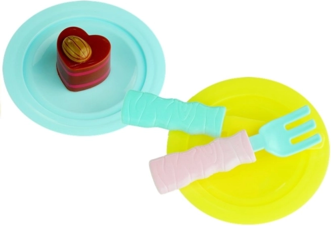 Ez a játékkészlet a gyerekeknek végtelen játékidőt nyújt és fejleszti a gyerekek képzelőerejét. Tartalmaz tortát, tekercset, kekszet, fagylaltot, csokoládét és minden szükséges kiegészítőt a nagyszerű játékélményért. A gyerekek értékelni fogják a színes és barátságos alakokat és a pasztellszíneket, amelyek ösztönzik látásukat és tapintásukat.