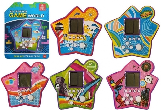 Az elektronikus játék csillag formájú, nagyon könnyű és a kompakt méreteknek köszönhetően könnyen magaddal viheted. Tartalmaz egy kijelzőt és fehér gombokat a játékfunkciókhoz, mint az indítás, szünet, hang némítása vagy visszaállítás.